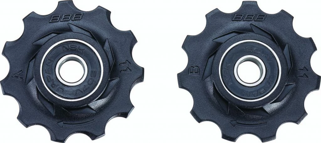 Galets de dérailleur 11 dents. Compatible avec Shimano 9 et 10 vitesses / Mega Range, SRAM X9/X7/X0 (après 2011) et Campagnolo 11 vitesses.