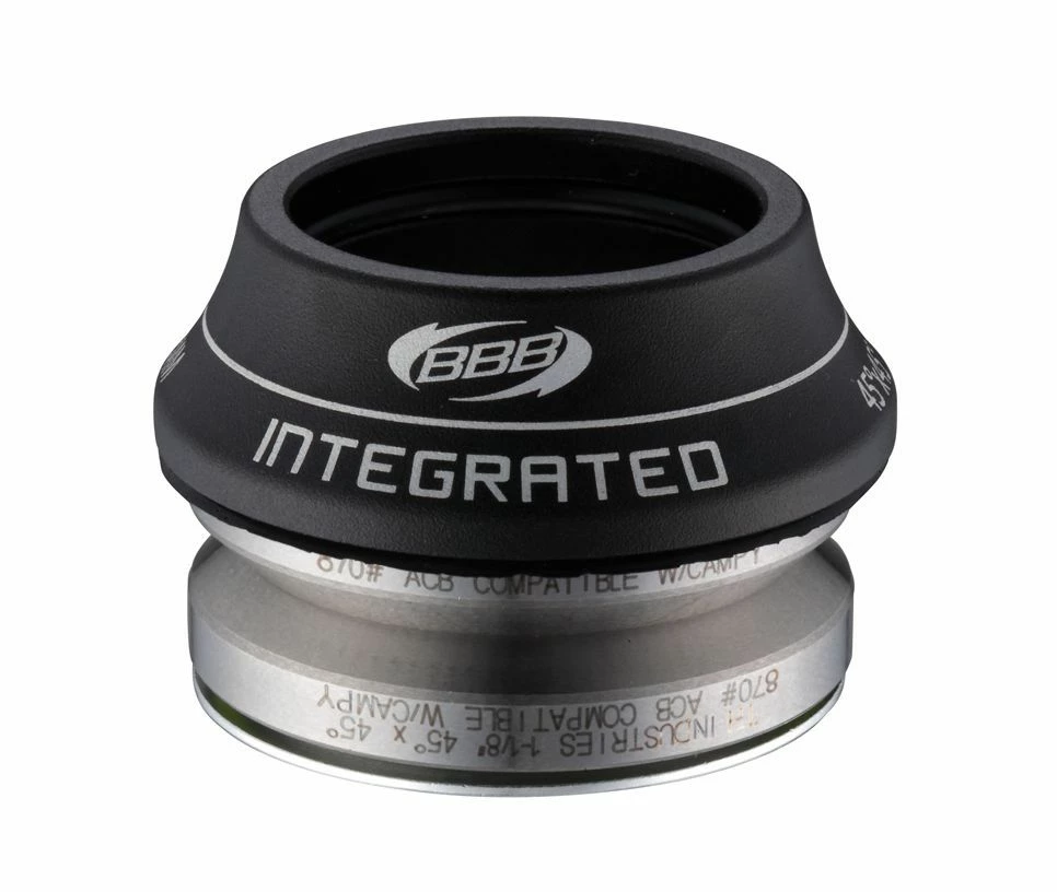 Jeu de direction intégré avec des roulements de 41,8mm de diamètre. Roulements cromo étanches avec un angle de 45ºx45º.
